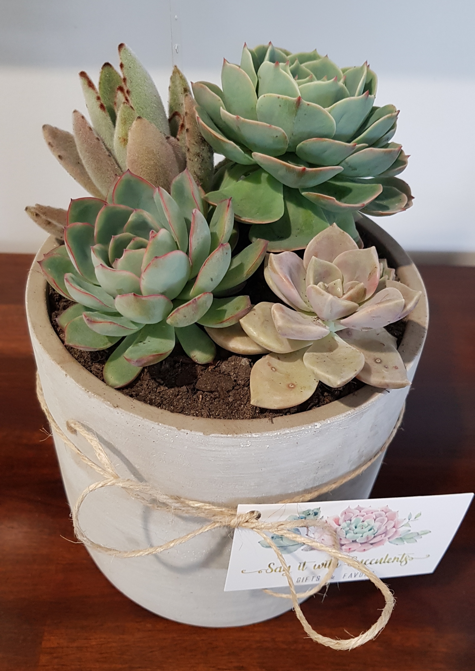 **Please note: Each arrangement will vary in colour, size and number of succulents.